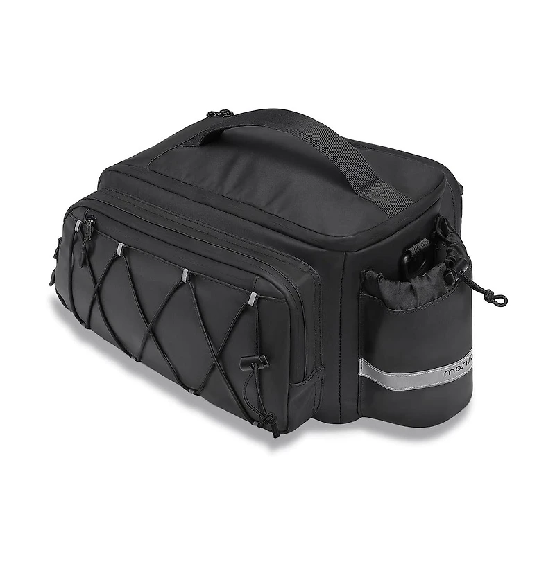 Stay organized on every ride with this versatile 10L bike rack trunk bag designed for commuting, travel and outdoor cycling. Crafted from durable waterproof material, it protects your essentials from unexpected weather, while the included rain cover adds extra security in heavy rain. The spacious main compartment and dual side pockets provide smart storage for daily items like phone, wallet, tools and accessories. Reflective details enhance visibility for safer night rides, and the stable mounting system keeps the bag securely in place even on rough roads. Finished with a carry handle and adjustable shoulder strap, it easily transitions from bike to everyday use.