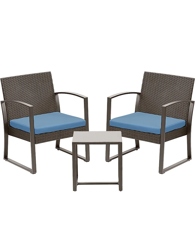 3pcs Patio Furniture Set Heavy Duty Cushioned Wicker Rattan Chairs Table Outdoor