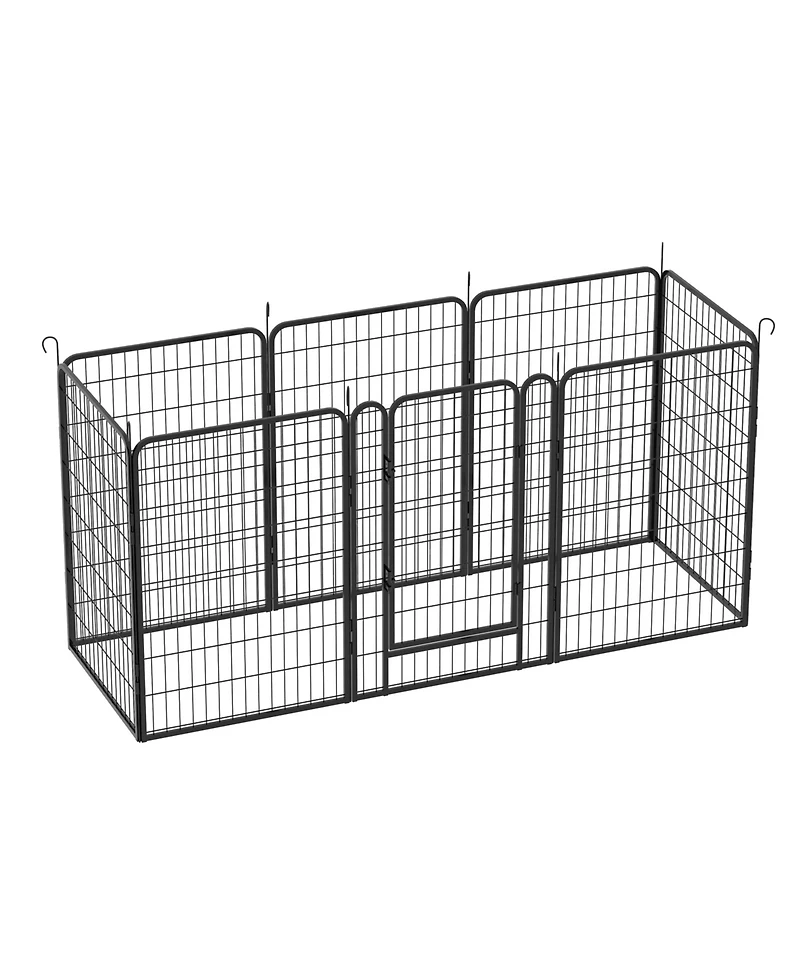 This versatile pet fence combines durable iron construction with rust-resistant coating for reliable indoor/outdoor use. Featuring an automatic gravity-locking gate and customizable shapes, it provides secure containment while protecting floors with included pipe plugs.