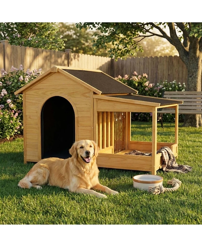 Aostirmotor 60" Large Outdoor Dog Kennel – Insulated Waterproof House with Porch, Asphalt Roof & Elevated Floor, for Medium & Large Dogs
