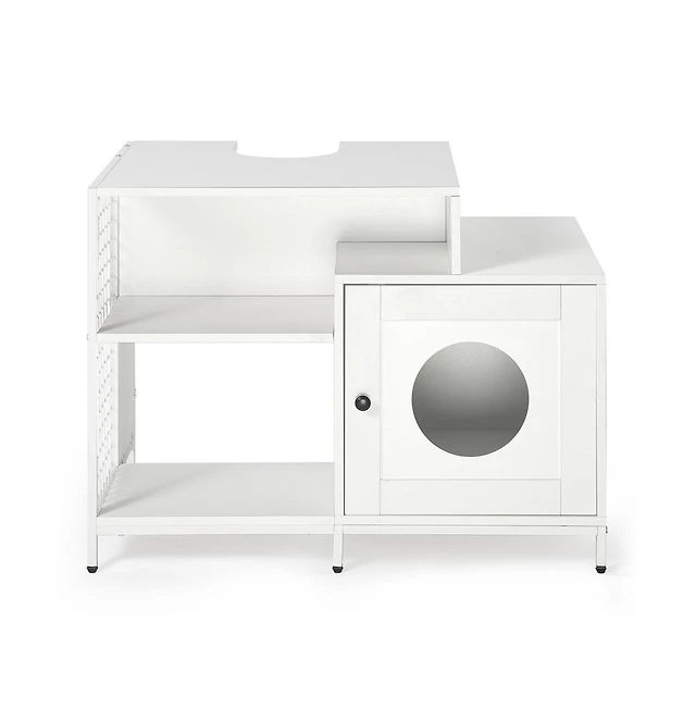 Aostirmotor White Cat Litter Box Enclosure Hidden Litter Washroom with Divider Indoor Large Cats