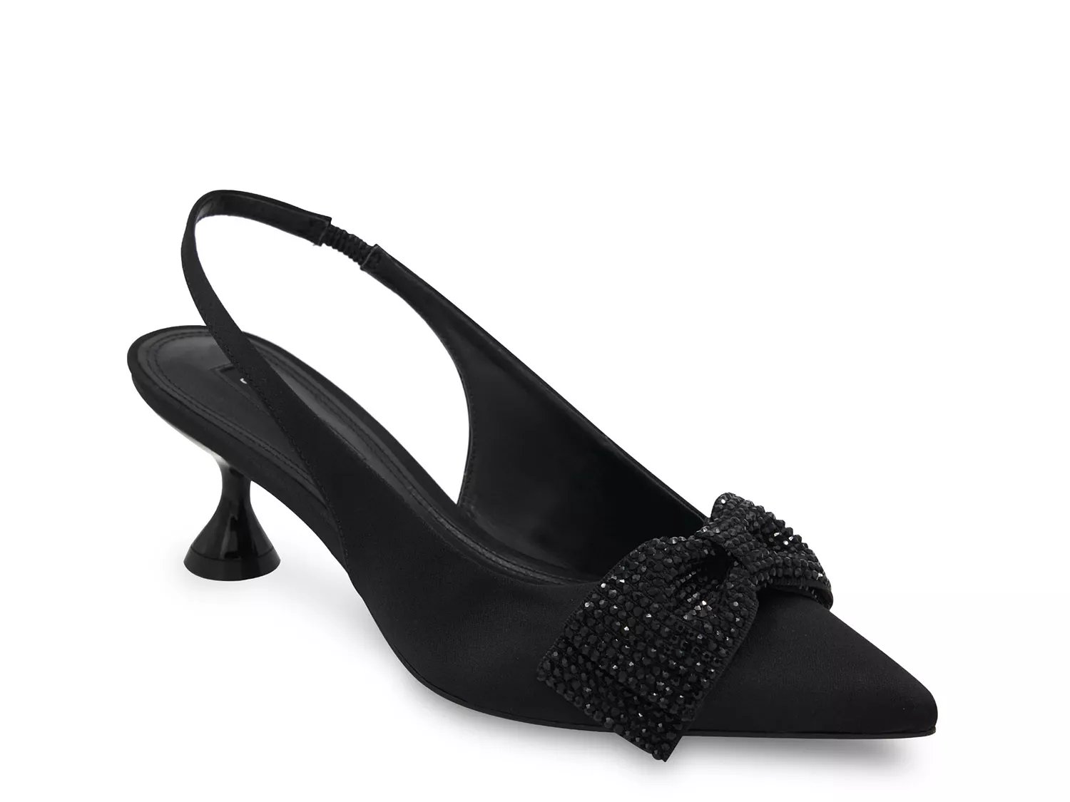 Jazz up your attire with the Archie pump from BCBG Max Azria. Embellished bow accent on the pointed toe elevates the appeal of this slingback sandal designed with a martini heel for a striking style.