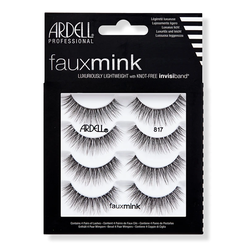 LASH FAUX MINK #817. Benefits: Ultra-soft fabulously full lashes create an effortlessly glamorous look. Includes: Four pairs of Faux Mink #817 lashes. :