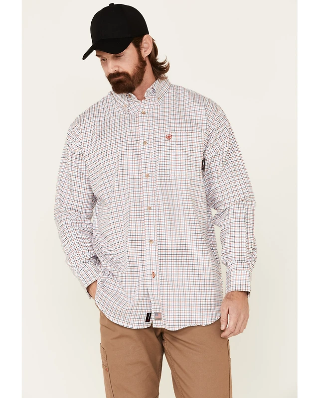 Ariat Men's FR Plaid Print Long Sleeves Button-Down Work Shirt - Tall