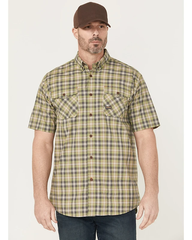 Ariat Men's Rebar Plaid Print Short Sleeve Button-Down Work Shirt