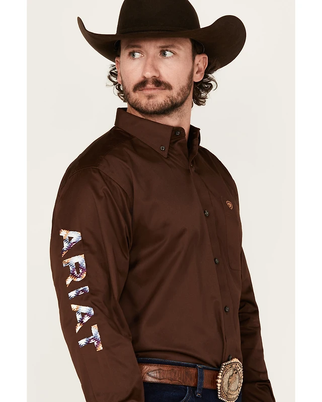 Ariat Men's Team Solid Twill Logo Long Sleeve Button-Down Western Shirt
