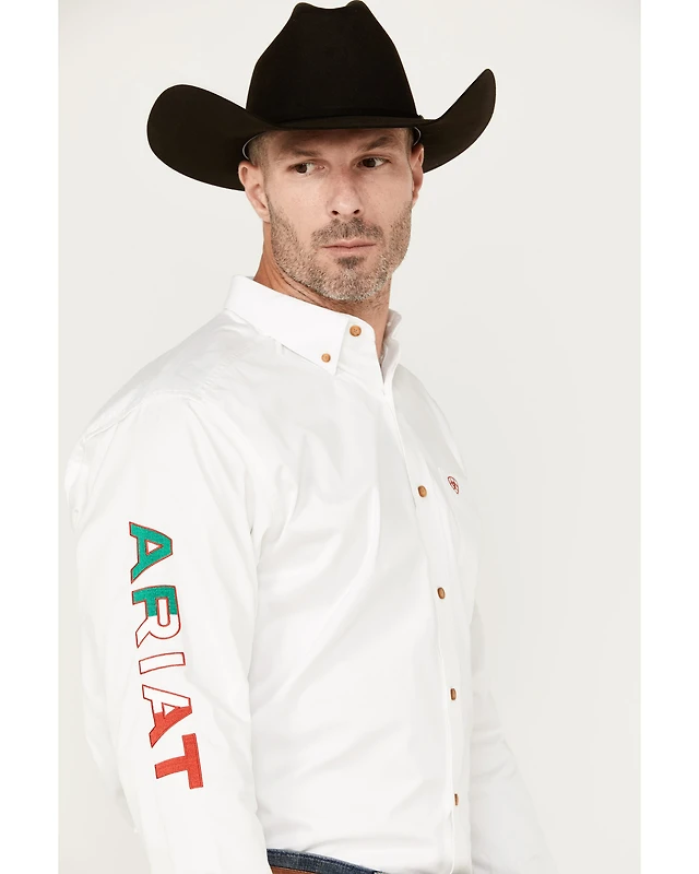 Ariat Men's Solid Team Mexico Logo Long Sleeve Button-Down Western Shirt