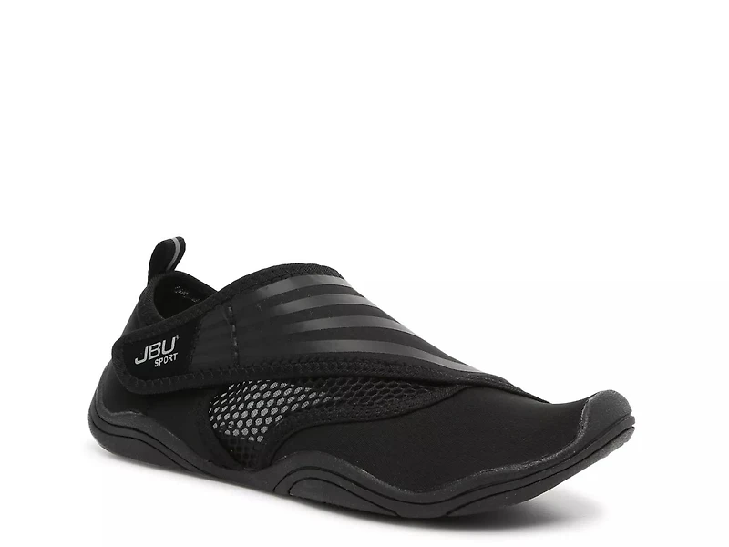Kickstart your next outdoor adventure with the Ariel water shoe from JBU. This water-friendly pair features a thick, asymmetrical hook and loop strap that wraps around the vamp for a secure fit.