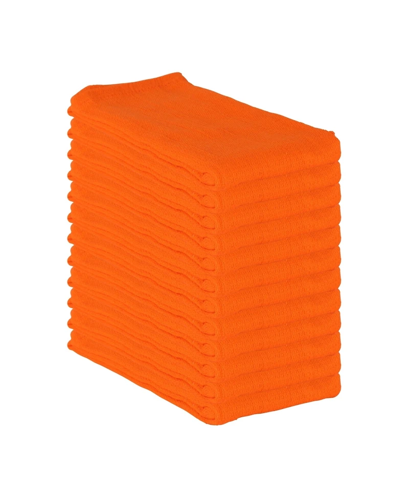 Our 12-pack of huck towel cleaning cloths measure 16" x 26" (10" bigger than standard microfiber cleaning cloths). Our vibrant huck towels are available in several colors. Blue, Green, Orange, Pink, Yellow, and White. Professionals use color-coding to mitigate the spread of cross-contamination—for instance, clean bathrooms with one color cloth, and dining rooms with another color.
