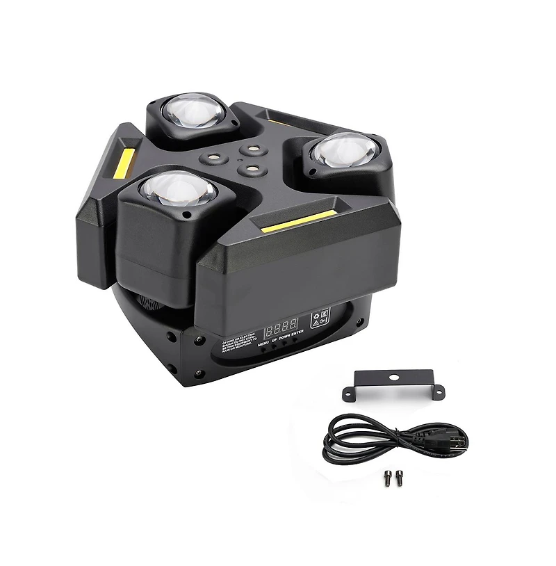 This 150W triple-head Rgbw moving head laser light integrates three core lighting effects: dual red and single green star-shaped laser beams, Rgbw mixed-color beams, and amber high-speed strobe, capable of presenting up to nine dynamic beam combinations. The device fully supports the Dmx512 protocol, offering 19/29 dual-channel selection, and features four control modes: automatic programming, voice activation, master-slave synchronization, and DMX programming. The reinforced chassis, combined with an active fan cooling system, supports 0-100% smooth dimming and 20 strobes per second. Its wide voltage design is compatible with standard Us household power supplies (110V-240V), and its operating temperature range covers -4 to 113 . Standard hanging accessories are included, making it suitable for home entertainment, private parties, clubs, and small commercial stages, easily creating a professional-grade dynamic lighting atmosphere.