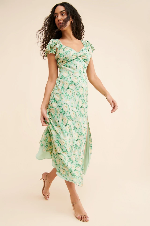 ASTR The Label Nissa Ruffle Tie-Strap Midi Dress
