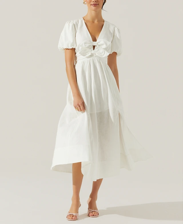 ASTR The Label Mayra V-Neck A-Line Puff-Sleeve Midi Dress