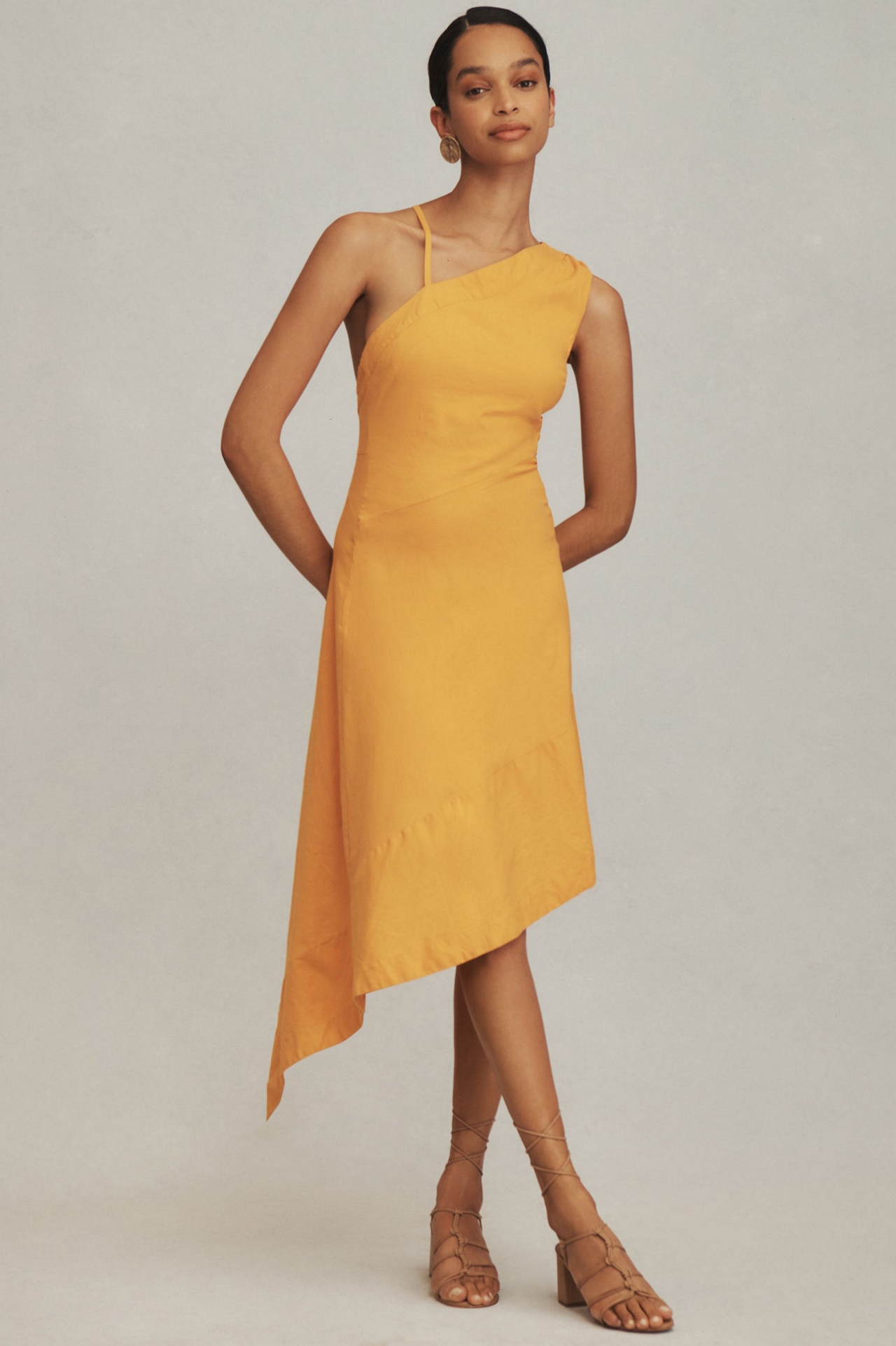 Asymmetrical Open-Back Linen Midi Dress