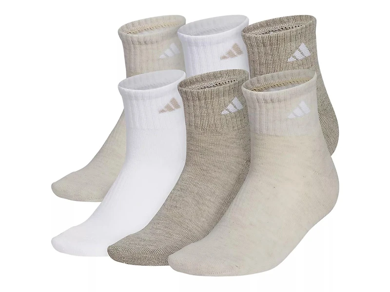 Keep your feet feeling fresh with the Athletic Cushioned quarter ankle socks from adidas. Moisture-wicking yarn keeps feet dry from sweat while arch compression secures the foot and offers extra support