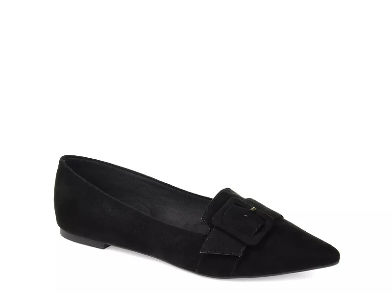 The Audrey loafer from Journee Collection will add a polished feel to any outfit. These flats feature a chic pointed toe design and a chunky square buckle for visual allure.