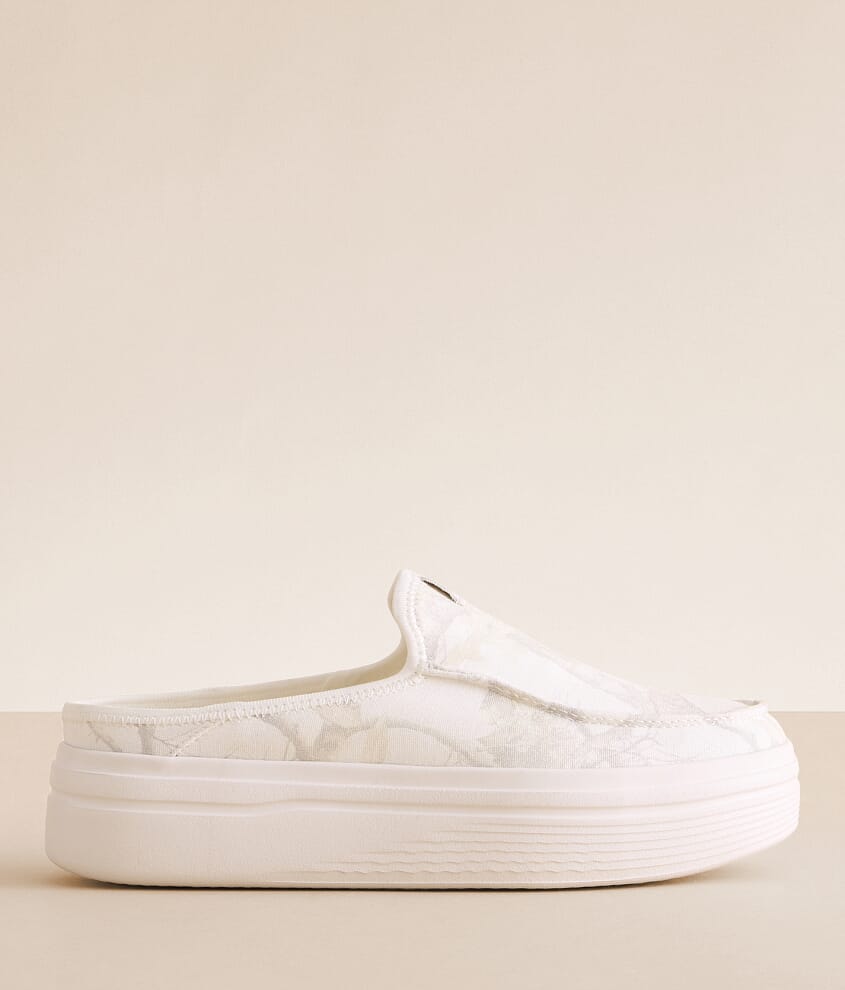 Lightweight camo print slip-on mule shoe Cushioned foam footbed Flex & fold technology