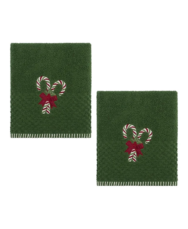 Linum Home Christmas Candy Canes Embroidered 100% Turkish Cotton 2-Pc. Hand Towel Set