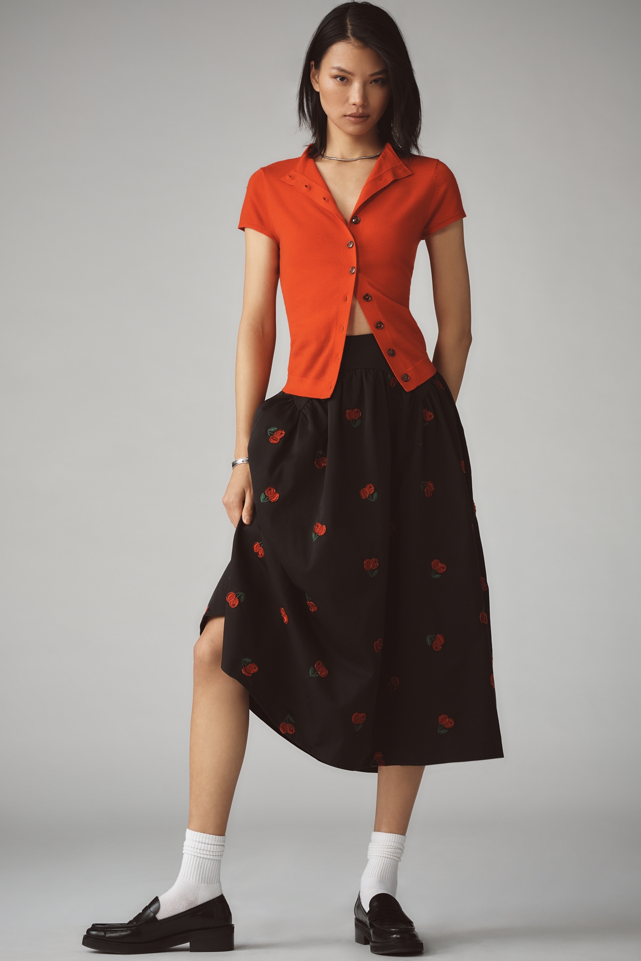Avec Les Filles Petite Cherry Applique Midi Skirt