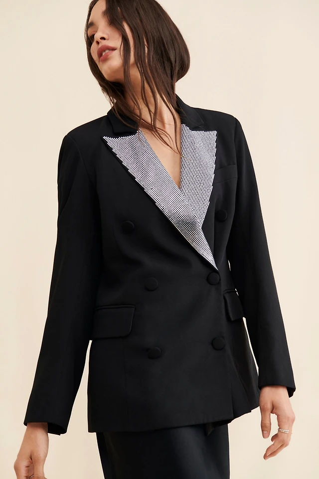 Avec Les Filles Rhinestone Tuxedo Blazer