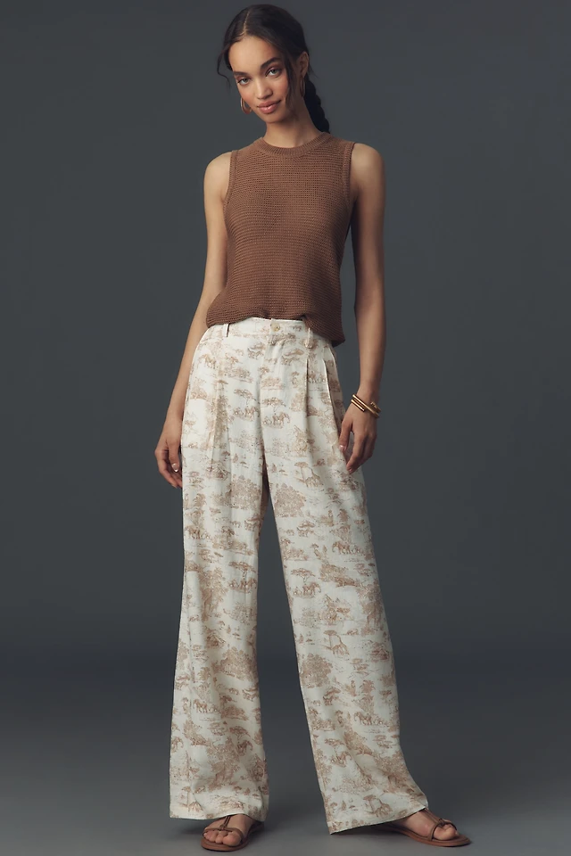By Anthropologie Linen Blend Pleated Wide-Leg Pants