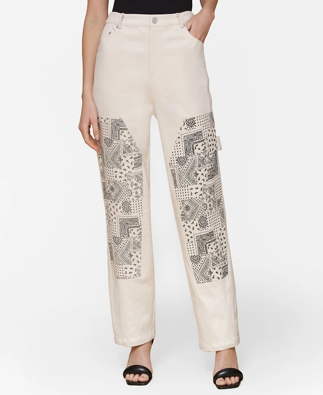 Avec Les Filles Women's Bandanna-Inset Carpenter Pants