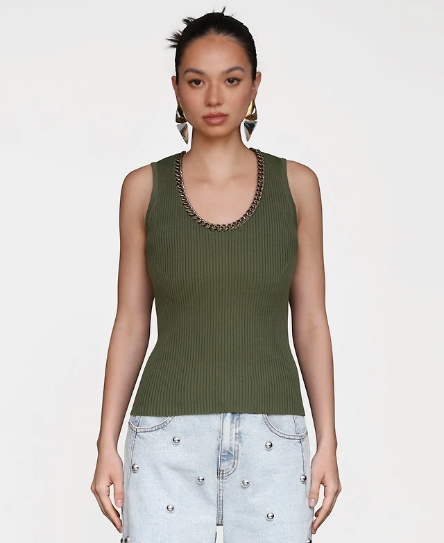 Avec Les Filles Women's Chain-Trim Ribbed Knit Tank Top