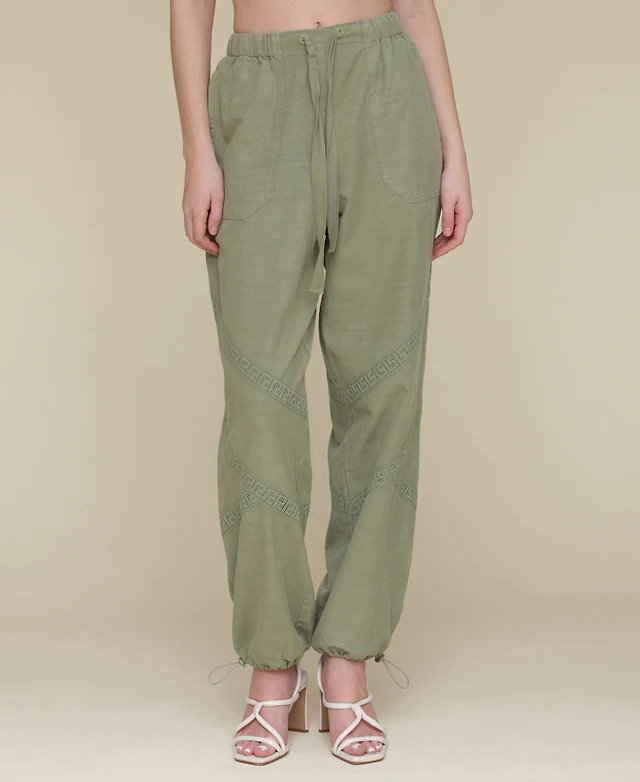 Avec Les Filles Women's Crochet-Trim Soft Utility Jogger Pants