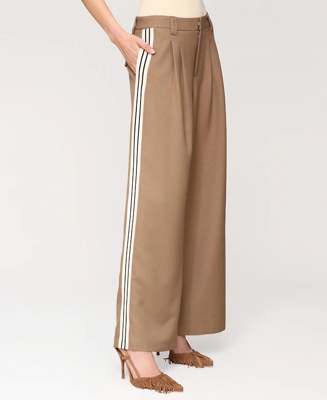 Avec Les Filles Women's High Rise Side-Stripe Pleat-Front Pants
