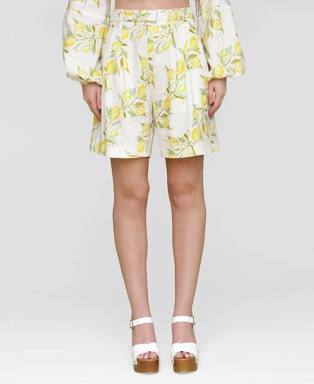 Avec Les Filles Women's Printed Pleat-Front Belted Shorts