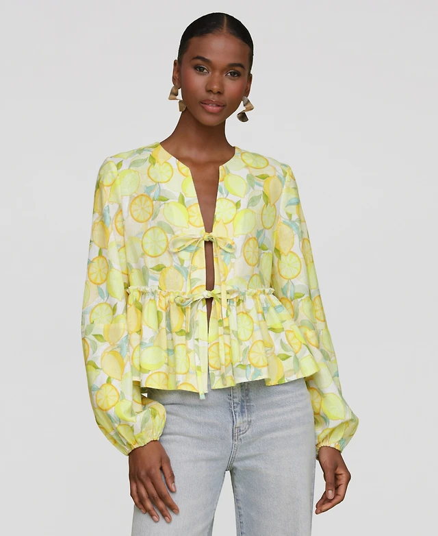 Avec Les Filles Women's Printed Tie-Front Balloon-Sleeve Blouse