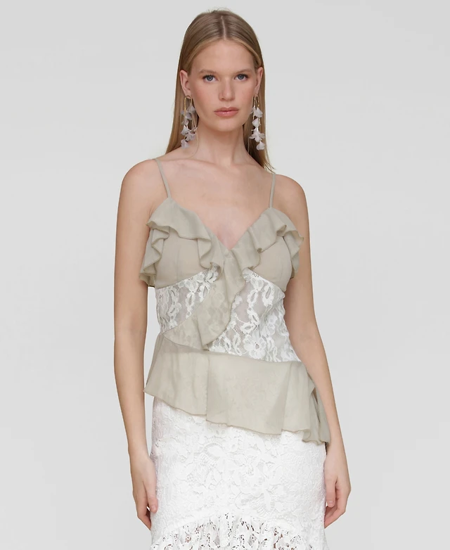 Avec Les Filles Women's Ruffle Lace-Panel Asymmetric Top