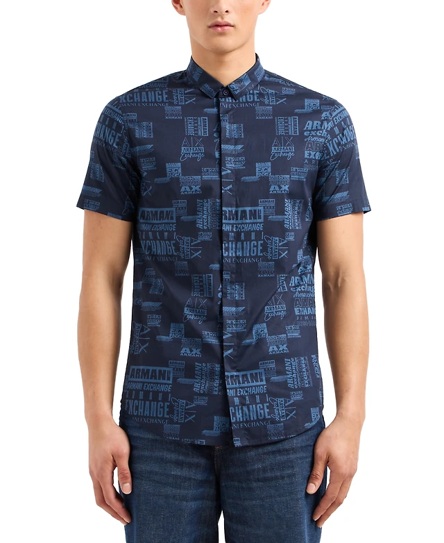A|X Armani Exchange Men's Slim-Fit All-Over Logo Print Shirt