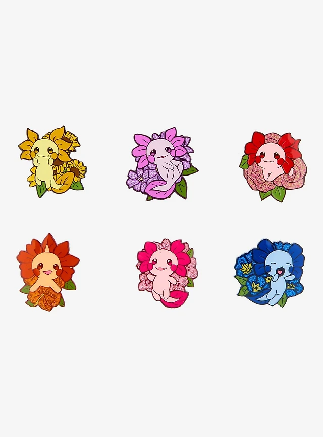 Axolotl Floral Blind Bag Glitter Enamel Pin — BoxLunch Exclusive