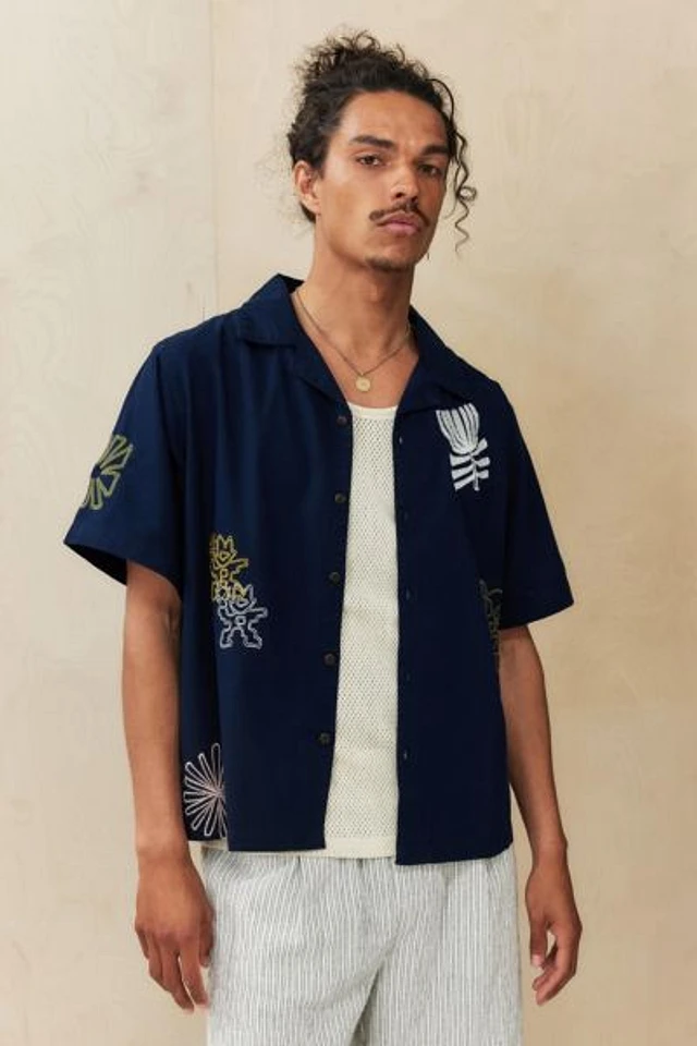 Pas de Mer Fresh Cocktail Embroidered Button-Down Shirt
