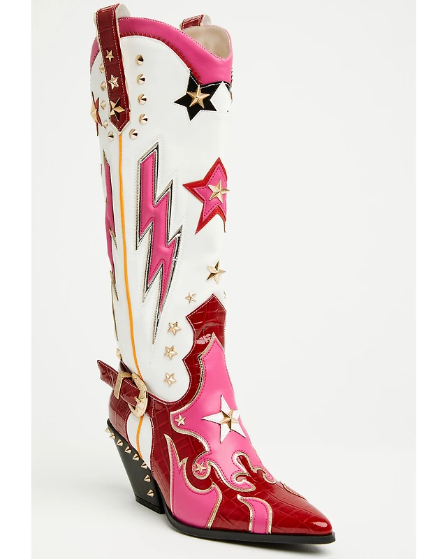 Azalea Wang Women's Cheona Star Studded Inlay Tall Fashion Boots - Snip Toe