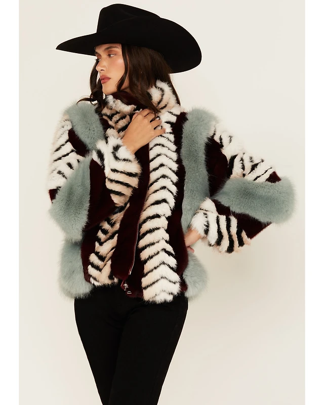 Azalea Wang Women's Inez Striped Faux Fur Jacket