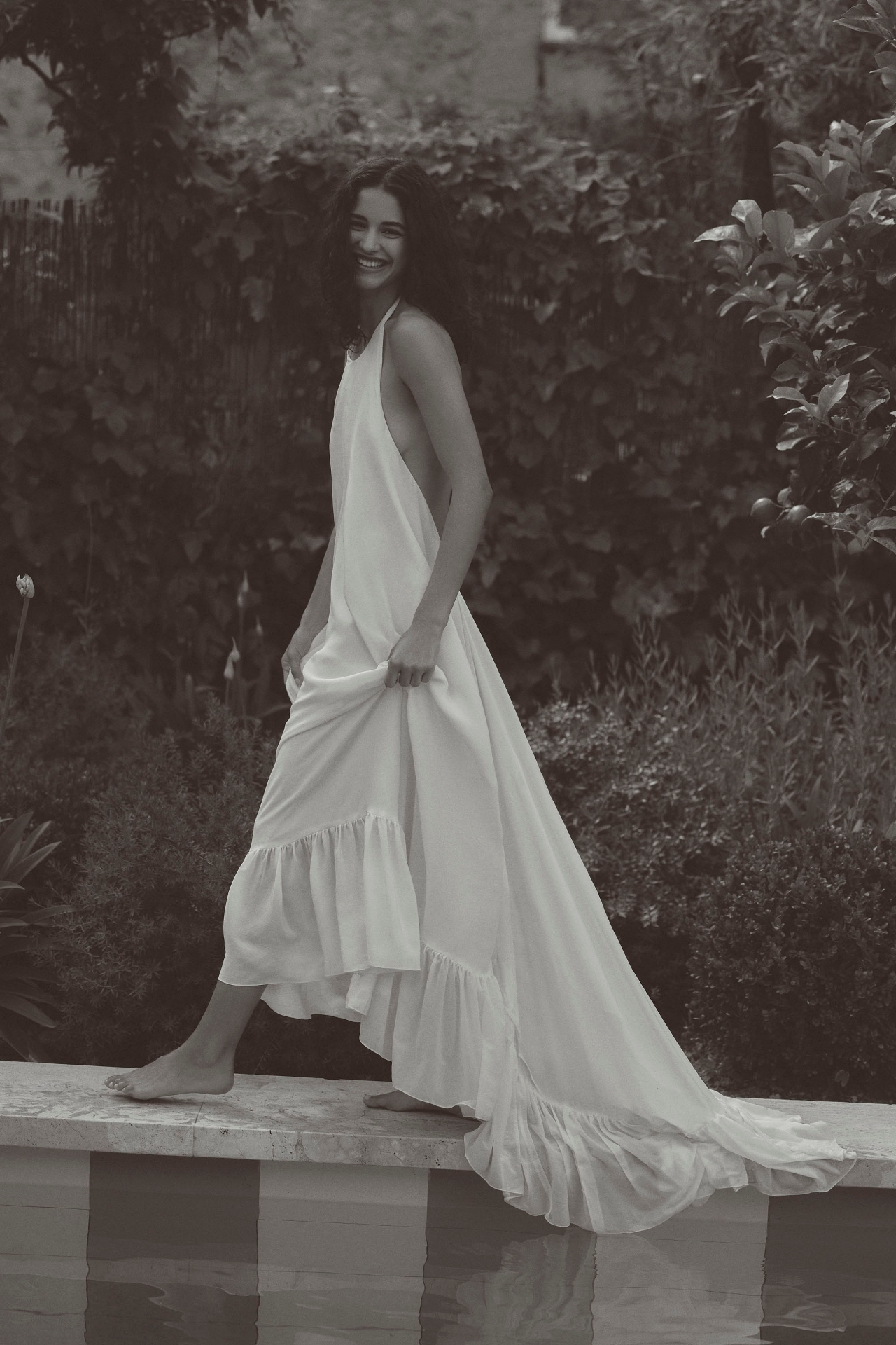 Azeeza Sadie Halter High-Low Ruffle Silk Gown