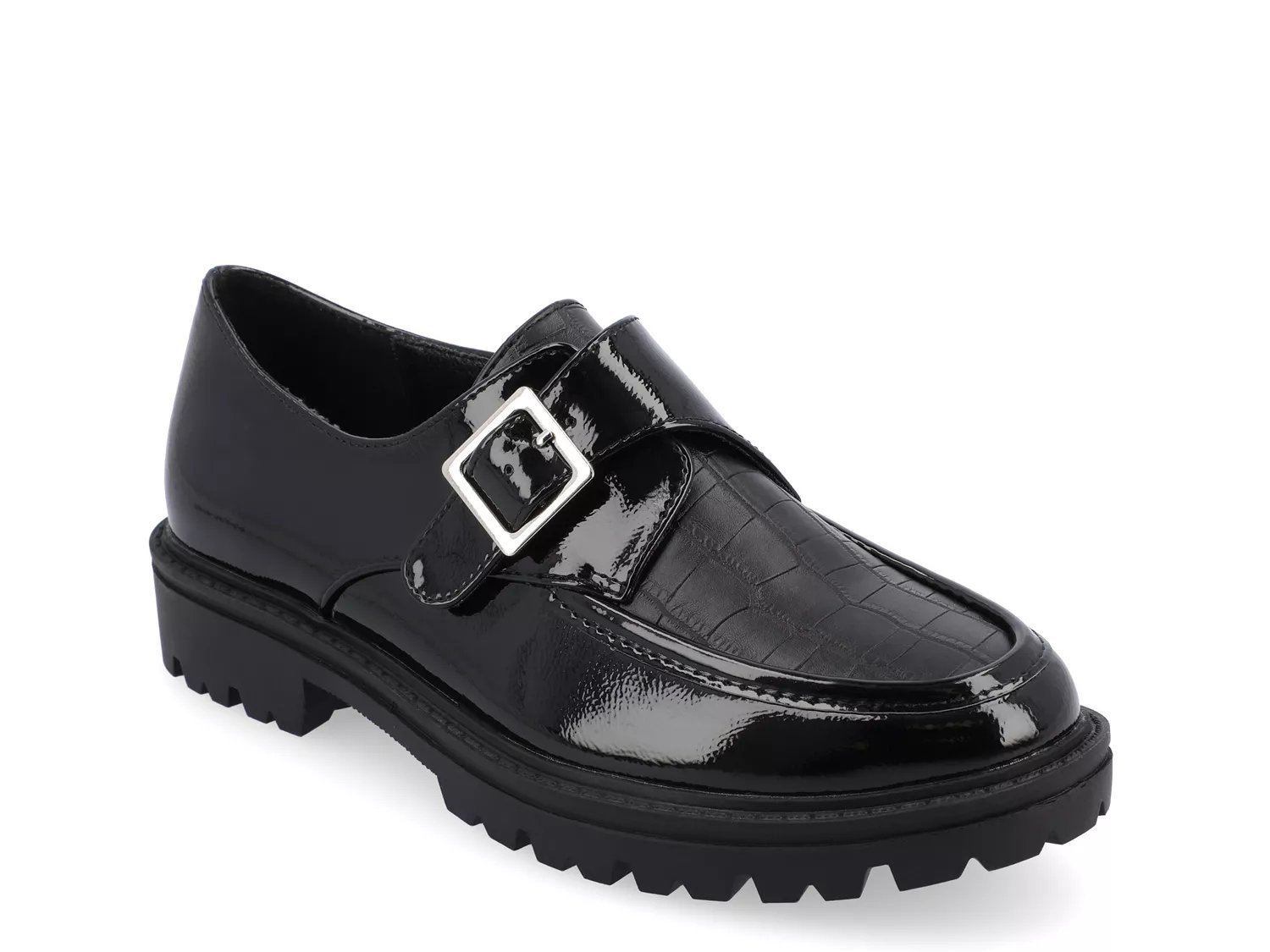 Experience elegance and comfort in every step with the Azula loafer from Journee Collection. Dual-textured upper with a buckle strap closure accentuates this soft vegan synthetic slip-on grounded by a sturdy lug sole. A Journee Comfort System™ insole cushions your feet to enable comfy strides.