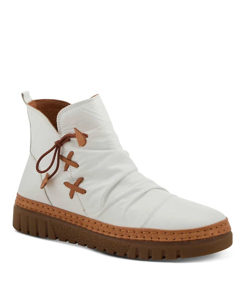 Azura Spring Step Vandis Ruched Leather Ankle Bootie with Side Lace Detail and Arch Support Insole in Bloomington, MN