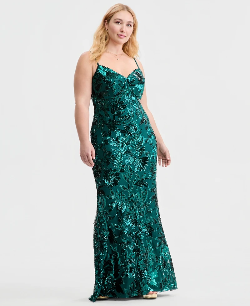 B Darlin Trendy Plus Floral Sequin Sleeveless Gown
