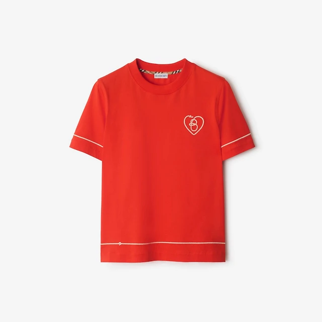 B Heart Cotton T-shirt in Tulip red - Women | Burberry® Official
