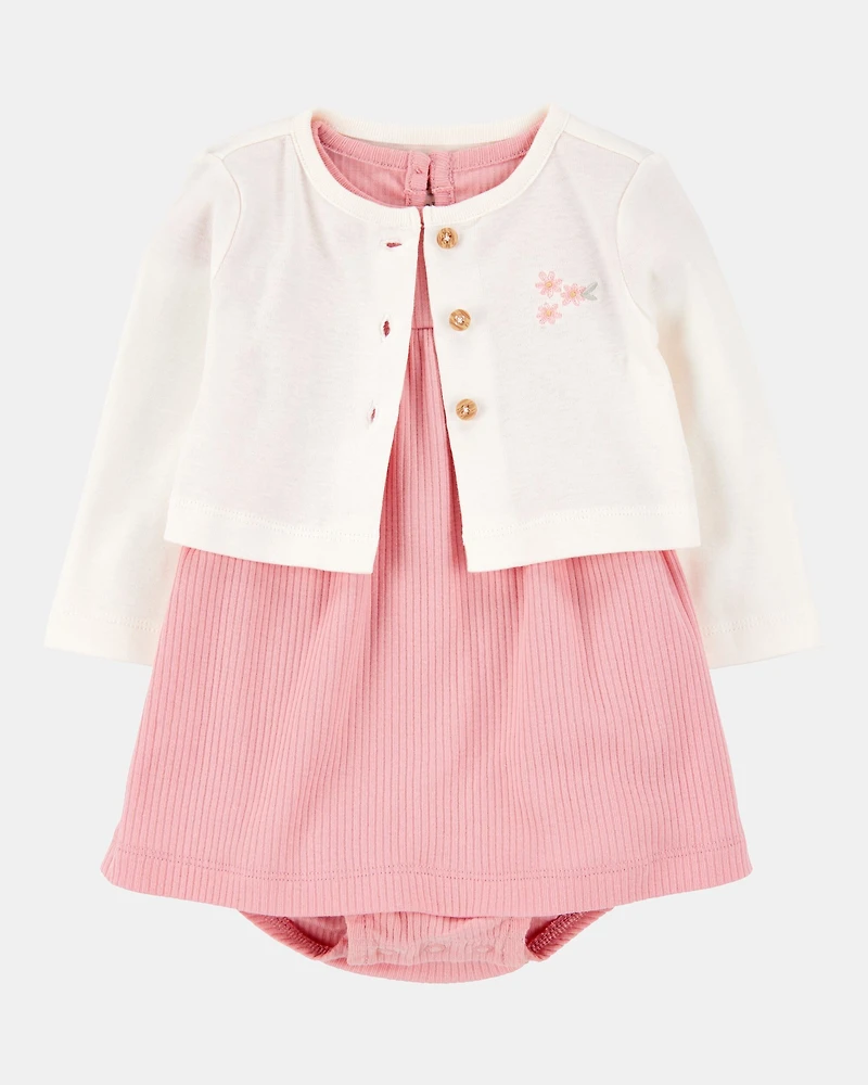 Baby 2-Piece Bodysuit Dress & Cardigan Set - Pink/Ivory