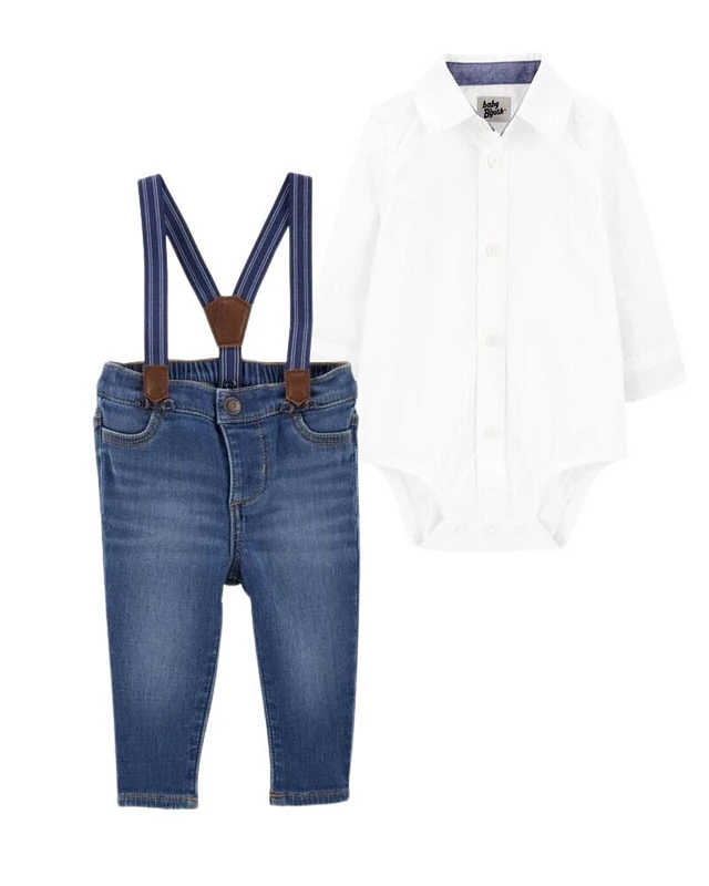 Baby 2-Piece Button-Front Bodysuit & Suspenders Jeans Set