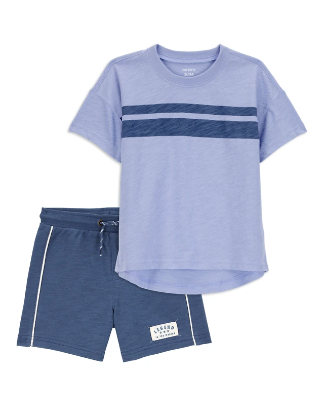 Baby 2-Piece Striped Short-Sleeve Tee & Pull-On Shorts Set - Blue