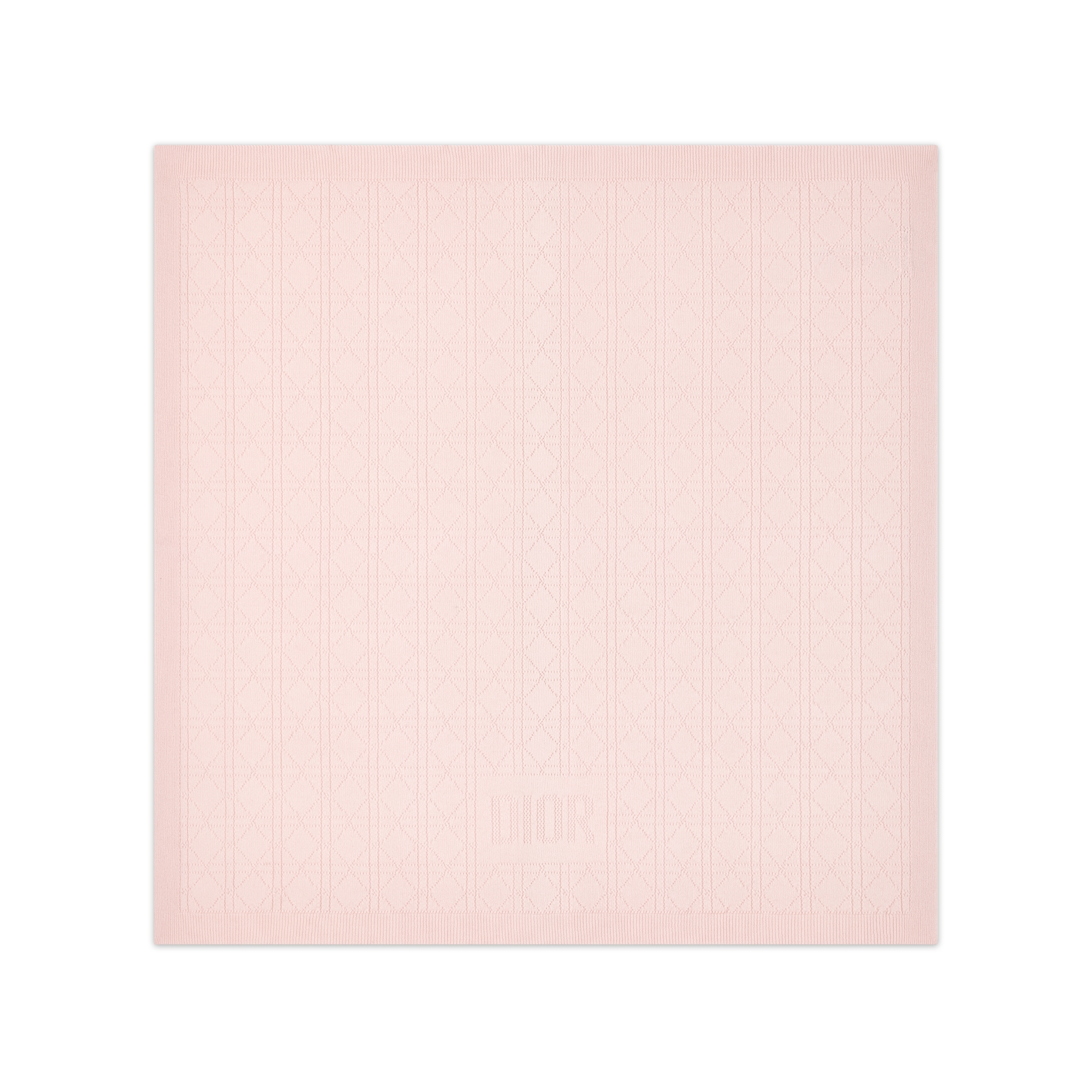 The blanket pays homage to House heritage with the iconic Cannage motif. Crafted in a pale pink openwork cashmere knit, it is embellished with ribbed edging and an openwork Dior signature. Combined with matching pieces from the collection, the soft blanket will make a timeless gift for newborns.