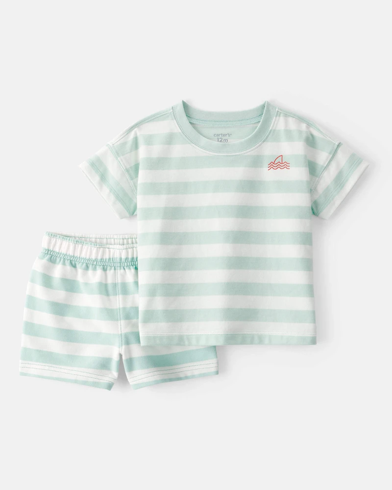 Baby Boy 2-Piece Shark Striped Top & Short Set - Blue/Ivory