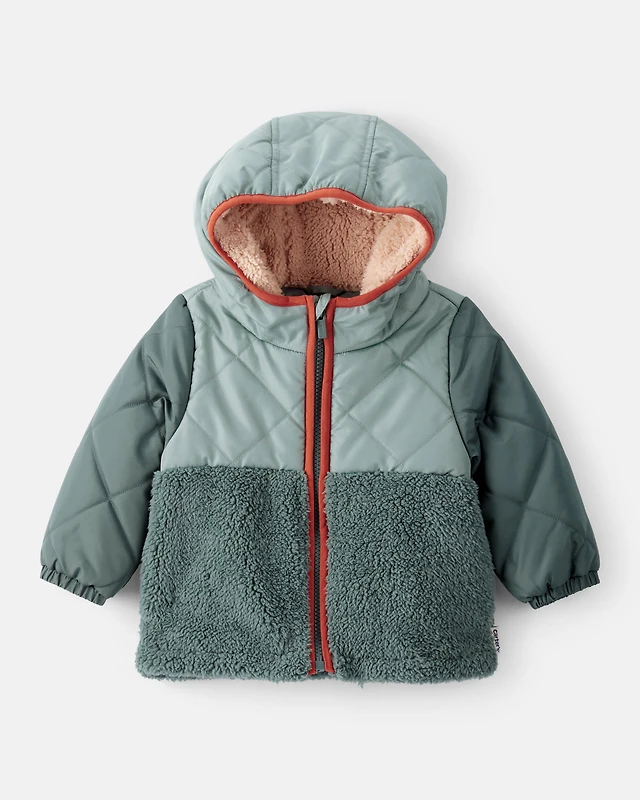 Baby Boy Long-Sleeve Midweight Quilted Sherpa Jacket - Green