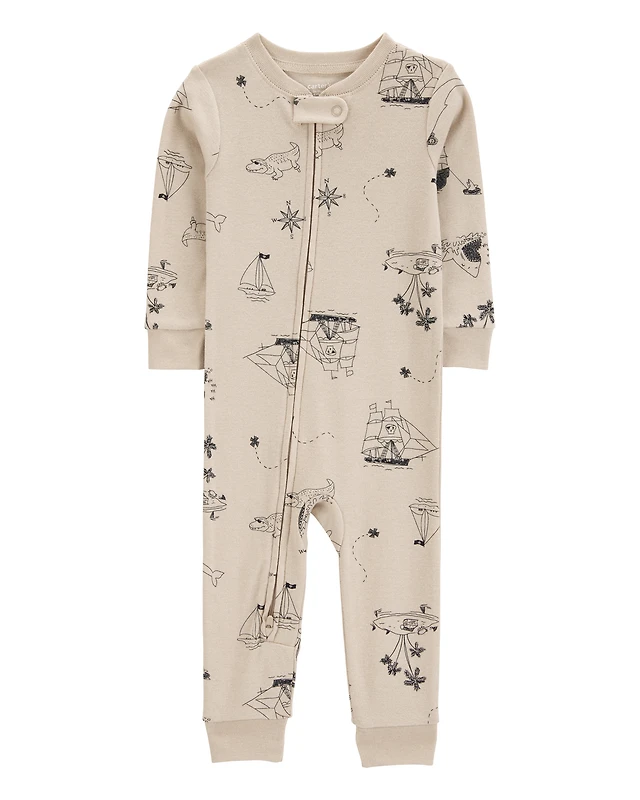 Baby Boy Pirate Print Snug Fit Cotton Footless 1-Piece Pajamas - Khaki