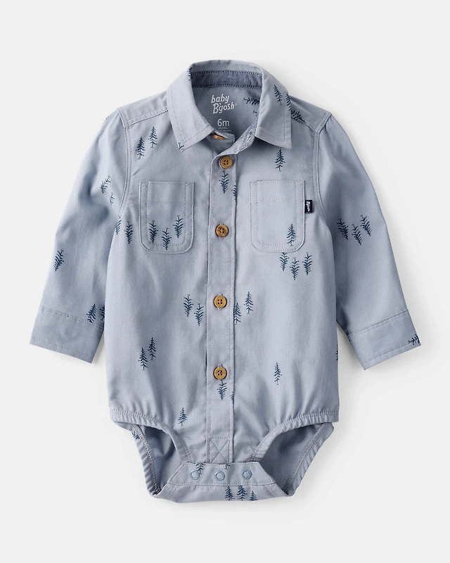 Baby Cotton Long-Sleeve Graphic Bodysuit - Blue