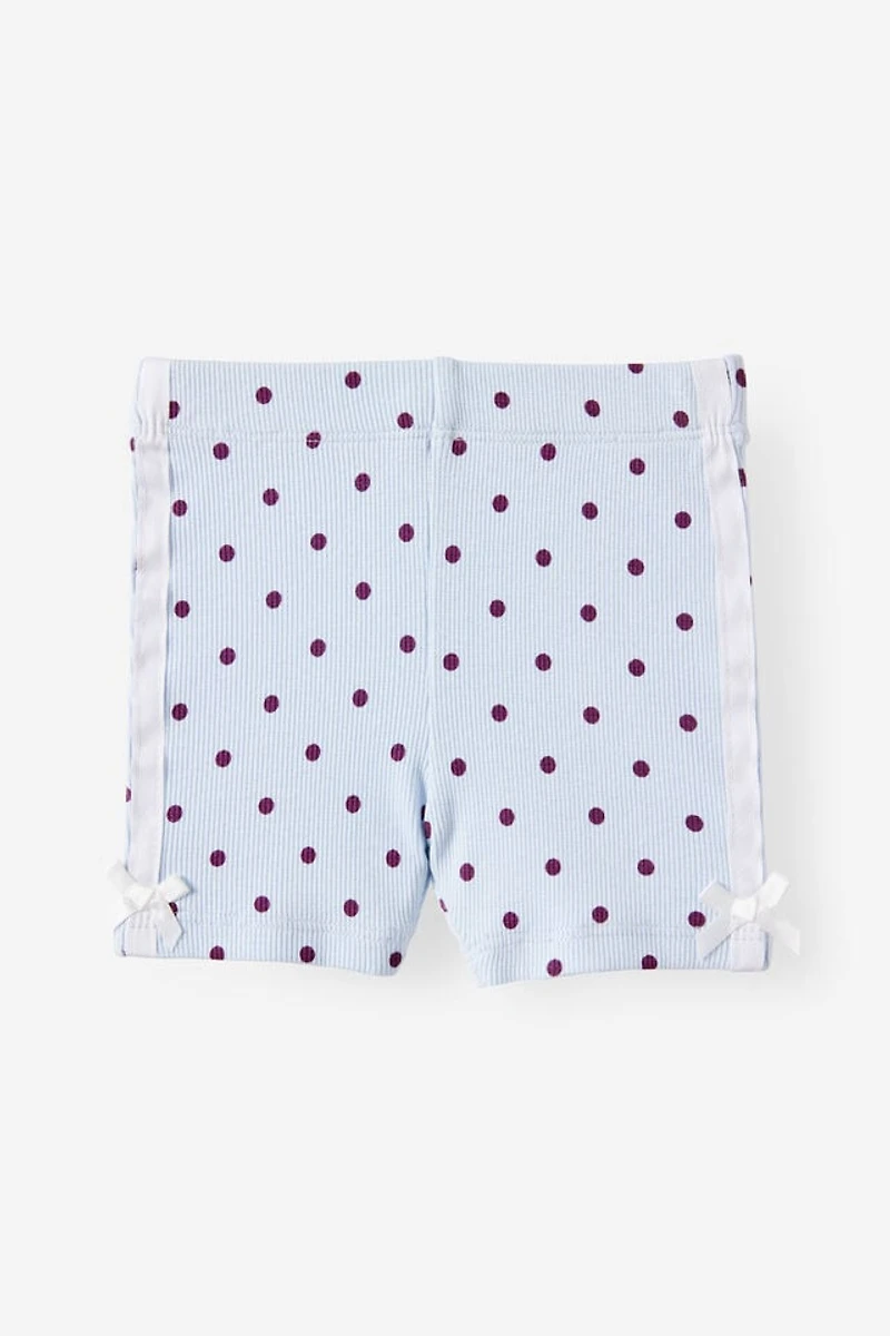 Wrapped in softness and made for play. Meet the Rain Rib Bike Shorties, with a fitted shape, elasticated waistband, and soft cotton rib that keeps them comfortable. The polkadot print adds a sweet touch, while the mid-rise fit stays put all day. Perfect for crawling, playing, and everything in between. Even better? Get the matching top to make it the cutest set ever.